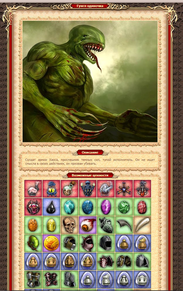 Теперь в описании каждого монстра отображается возможный дроп!