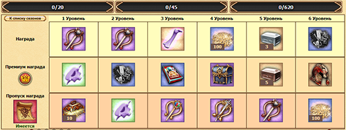 - Максимальное кол-во очков в сезоне: Расчитывается по формуле 20(очков на уровень) * кол-во суток в месяце.